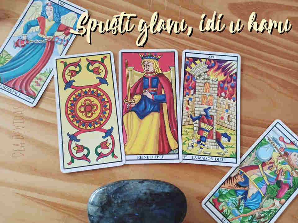 Jednostavno, mirno povezivanje. Promatranje svoja dva ćupa: u jednom je otrov straha, u drugom bezbrižnost nektara. Ako mrvu otrovnog kapneš u ovaj drugi, dobiješ zdrav oprez. A pravu mjeru znaš iz hare, tamo se povezuje. Hodaj, razmišljajući kako tvoji jajnici/testisi koračaju. Da, to je onaj udah kroz tabane, jer je tamo prva točka bubrega. Hodaj u svom ritmu, zato je Tarot najavljivao ritam kao ključan. Ritam tvoje pjesme, tvog bića.